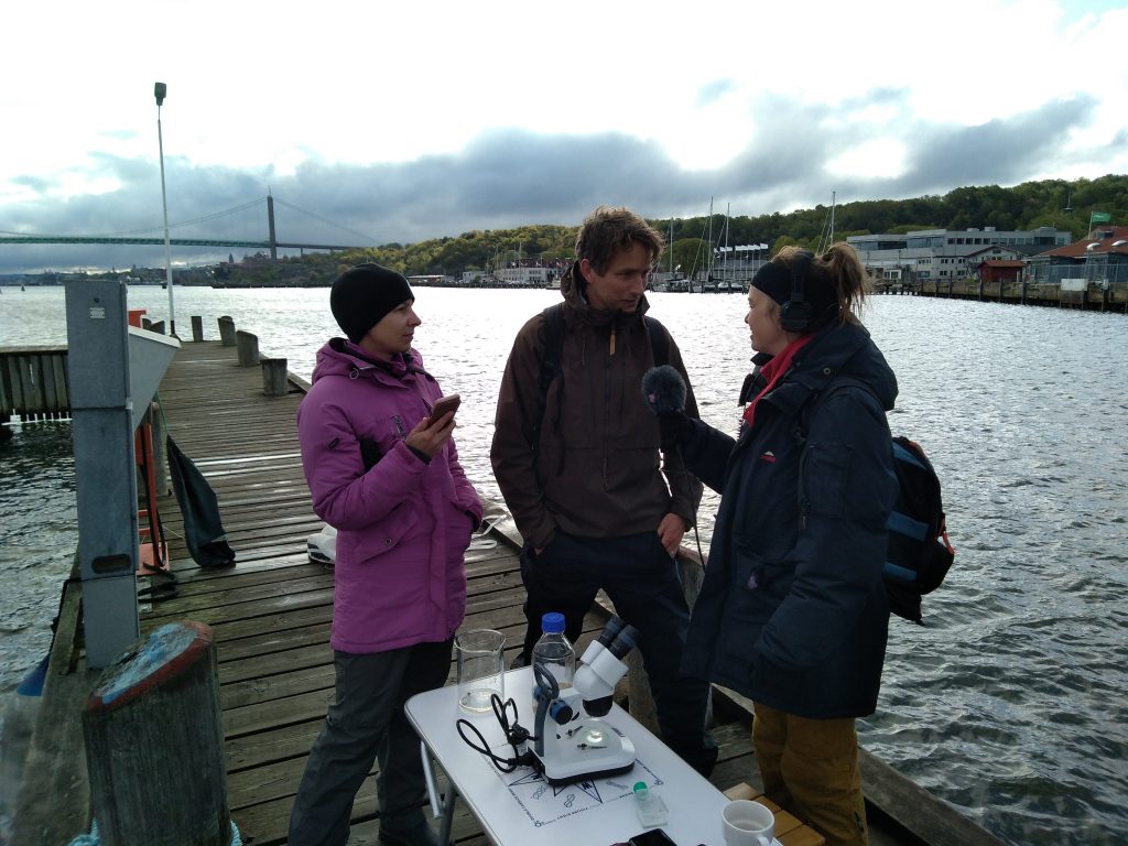 Idag spelades delar av Sveriges Radio’s program ”Naturmorgon” in på Göteborgs Marinbiologiska Laboratorium på Nya Varvet i Göteborg. Forskarna Jenny Lindström och Erik Selander från Göteborgs universitet berättade för reportern Anneli Megner Arn om deras forskning på dinoflagellater och copepoder (hoppkräftor). Lyssna på Naturmorgon och se videofilmer mm från sändningen här: Naturmorgon och läs mer om planktonforskning på pelagial.se.